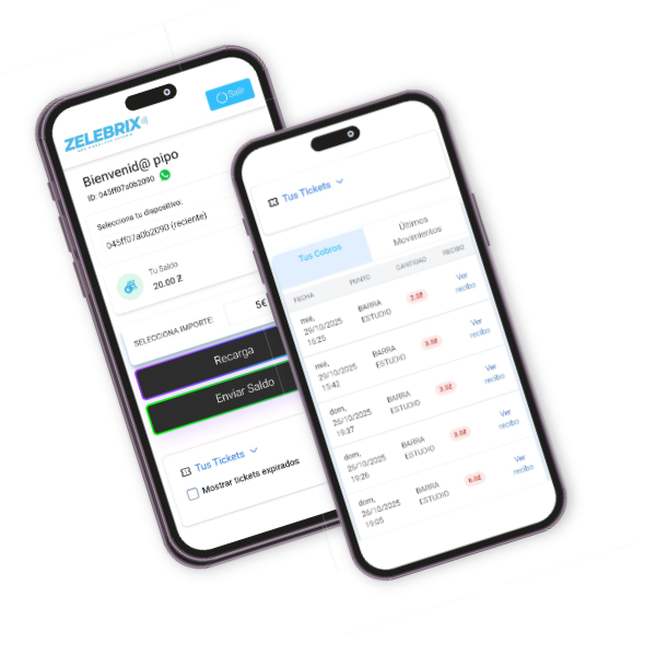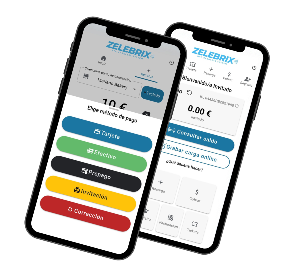 Zelebrix puede recargarse en Taquilla tanto en efectivo como con tarjeta. Además hemos desarrollado la tecnología Tap & Reload © que permite a los usuarios realizarse autocargas acercando su propio móvil a cualquiera de nuestros dispositivos NFC.